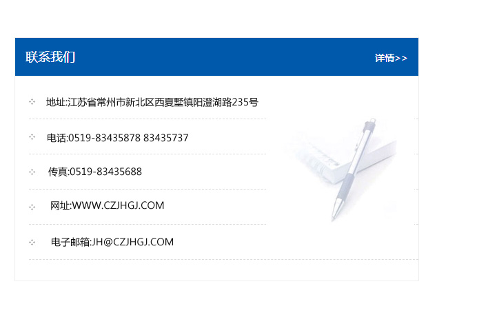 傳真:0519-83435688    郵編:213135    網址:WWW.czjhgj_com.ahjxzz.com    電子郵箱:JH@czjhgj_com.ahjxzz.com